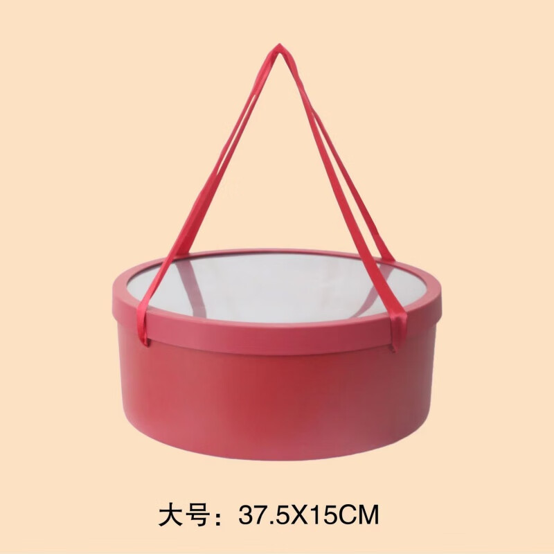 带手提绳圆形鲜花水果礼盒空盒花盒花店包装插花礼品盒花束盒材料 手提大红色礼盒+盖子 防水