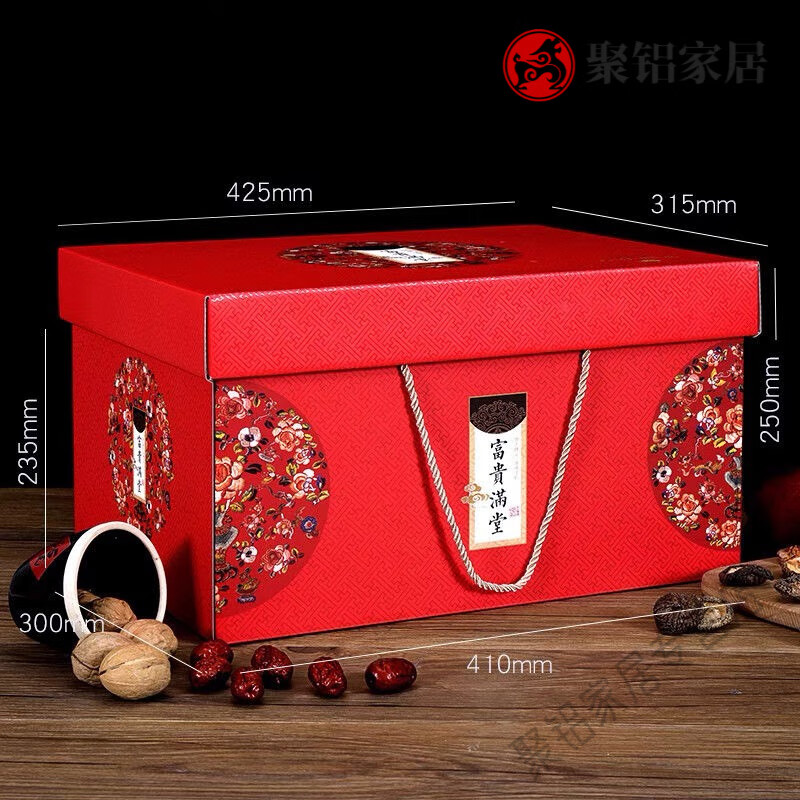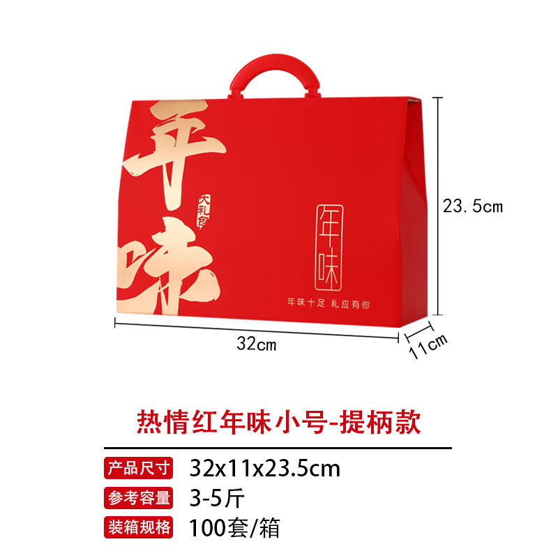 帮大夫礼盒空盒高级感高档年货礼品盒空盒特产包装盒特大号红色盒子定制 小号红色年味-提柄款