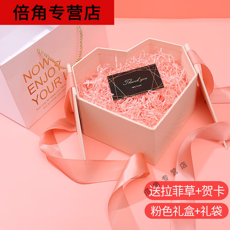 威尔基礼盒空盒礼品盒空盒礼物盒心形首饰生日礼盒高级感爱心次日达包装 爱心礼盒+礼袋+拉菲草+贺卡