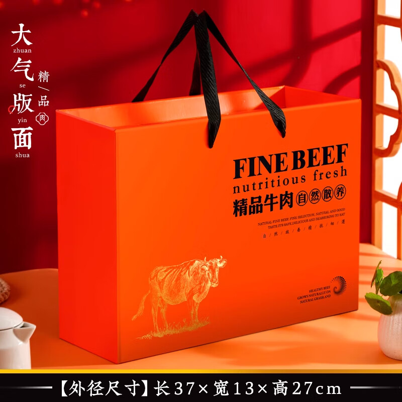 牛羊肉包装礼盒空盒 通用牛肉羊肉礼盒包装盒羊排牛腱礼品包装纸 橙色牛肉中号10个