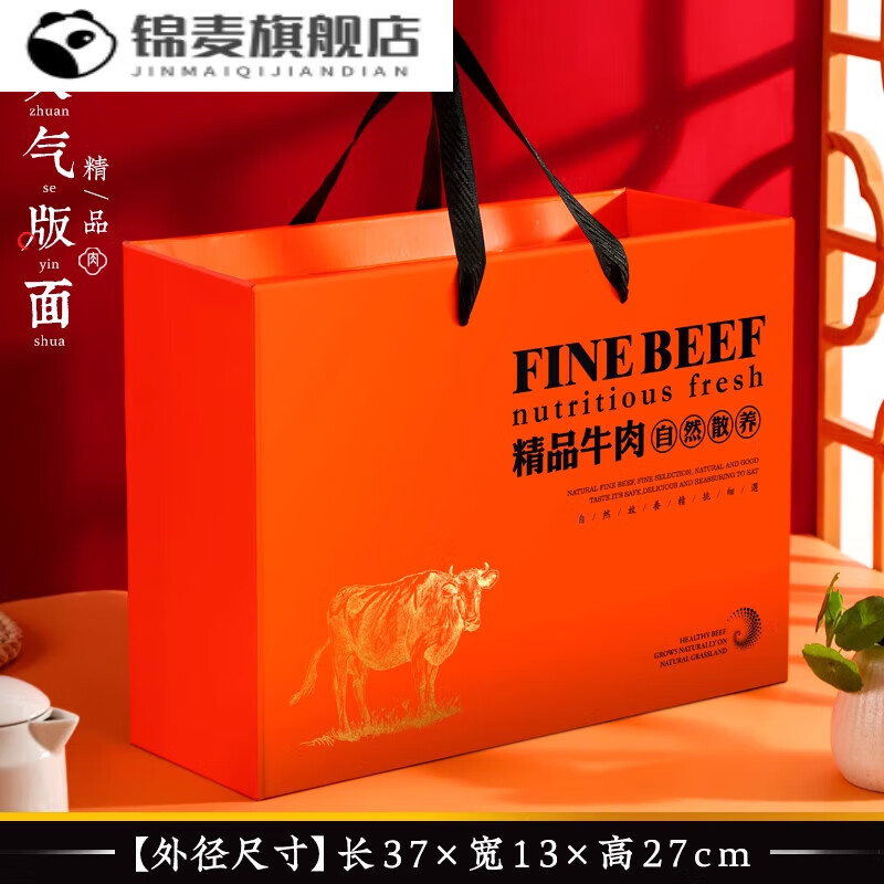 山头林村牛羊肉包装礼盒空盒 通用牛肉羊肉礼盒包装盒羊排牛腱礼品包装纸 橙色牛肉中号10个