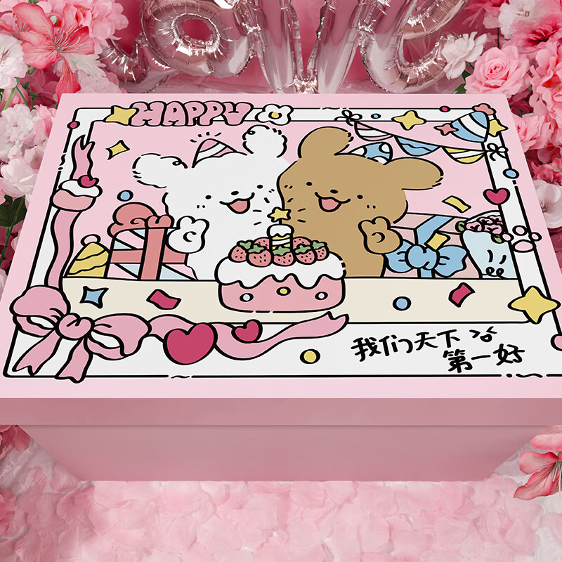 礼美达礼物箱子生日礼盒空盒礼物盒子礼品包装盒惊喜纸箱包装纸高级大号 粉色贴贴小狗小号27*22*20 礼盒+小狗包装纸