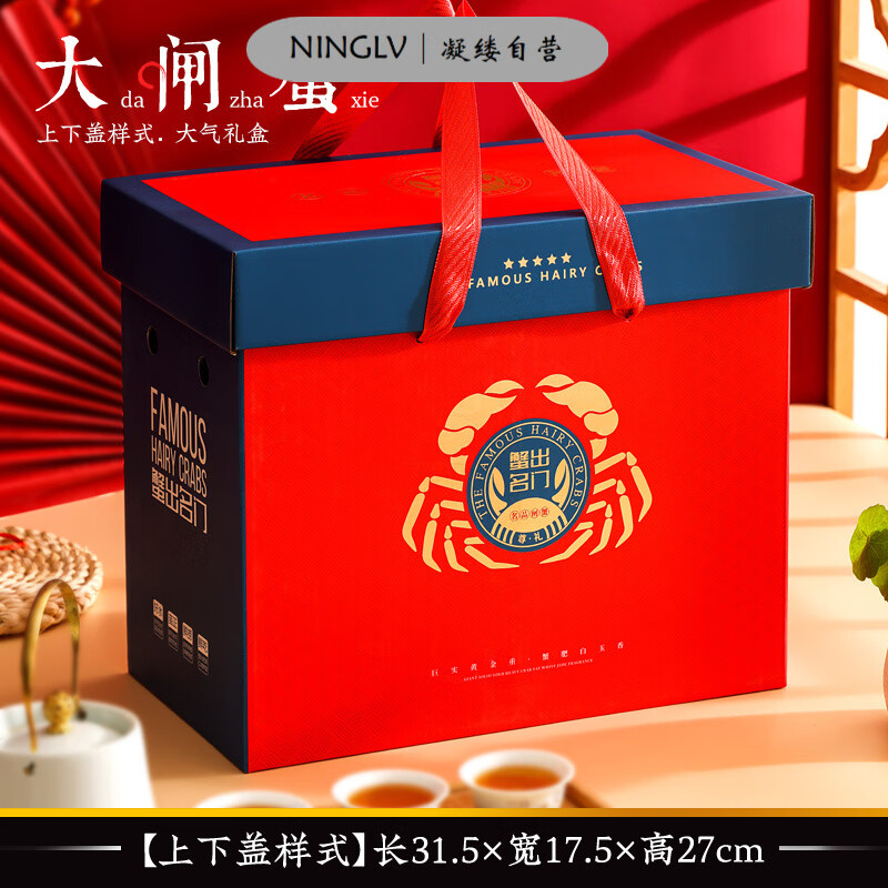 高端大闸蟹礼盒高档包装盒空盒阳澄湖通用海鲜螃蟹醉蟹礼品包装纸 上下盖蟹出名门红色款(上盖+下底)