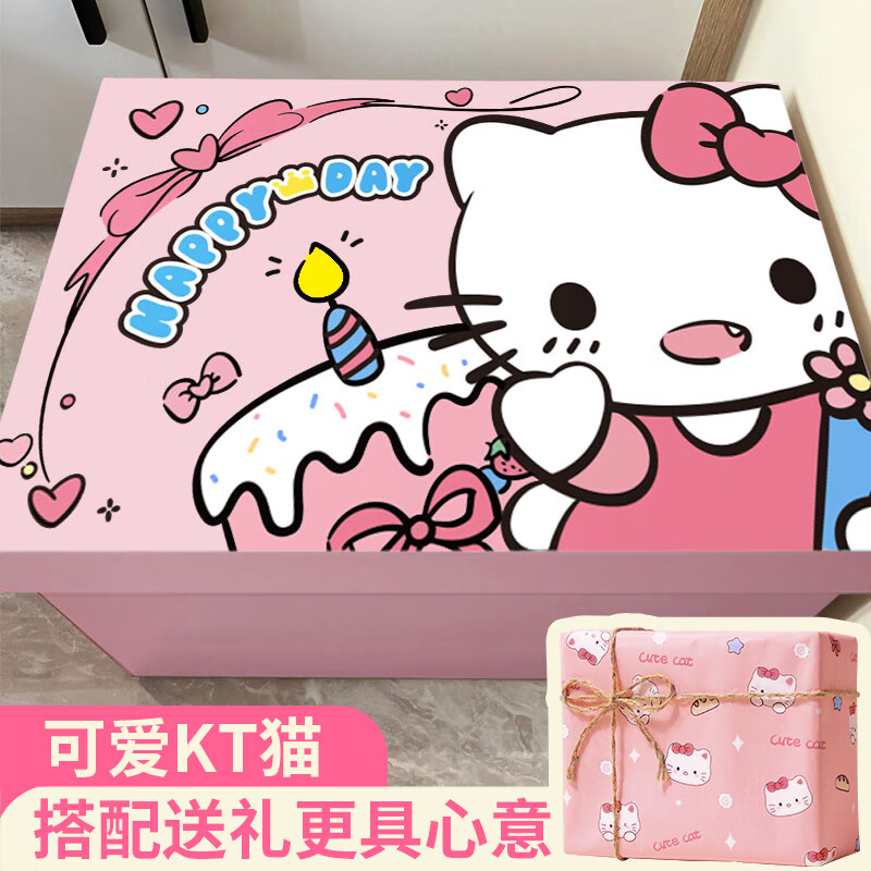 礼美达猫咪KT礼物盒包装纸生日礼盒空盒子礼品包装盒大号纸箱高级送老师 裸盒+浪漫粉色KT猫包装纸 kitty1号35*26*26(适合装零食/6张包装纸)