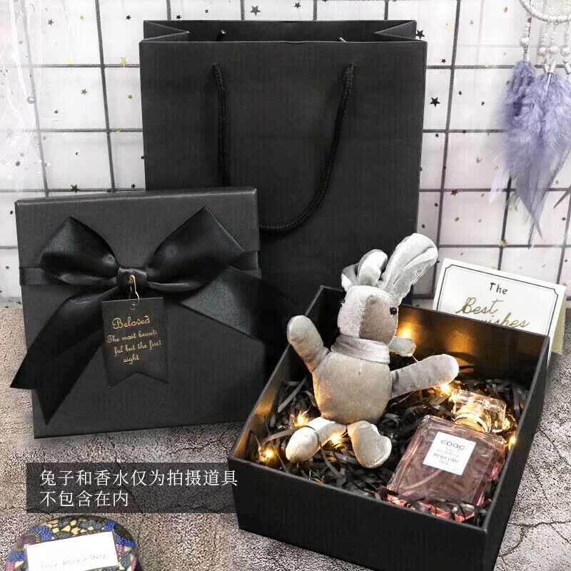 TaTanice礼盒空盒新年礼物情人节生日礼物盒伴手礼盒包装盒 蝴蝶结黑色