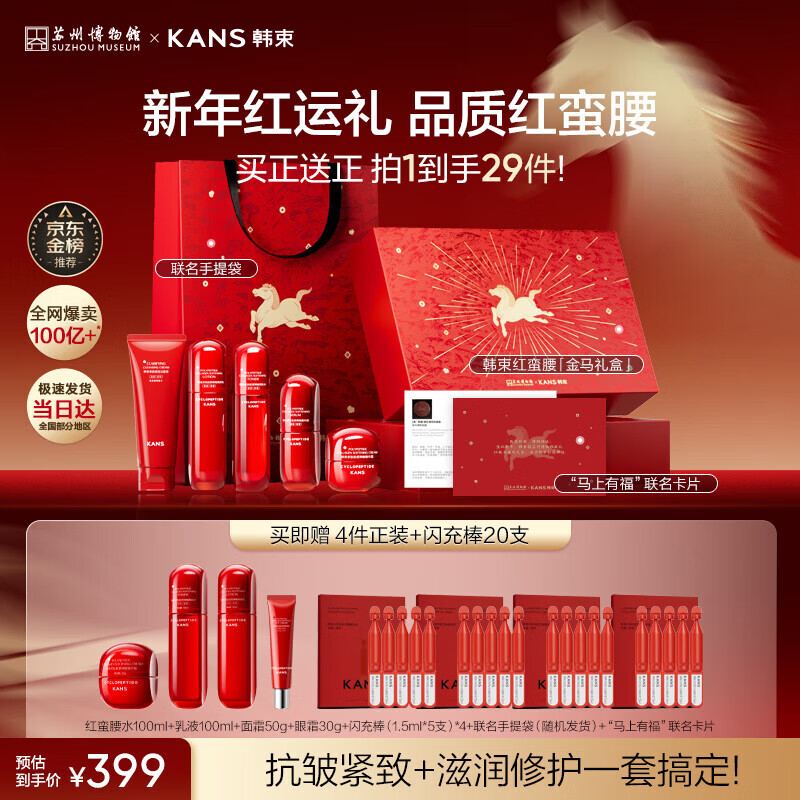 韩束红蛮腰5件套护肤品套装水乳礼盒面霜抗皱紧致化妆品生日新年礼物