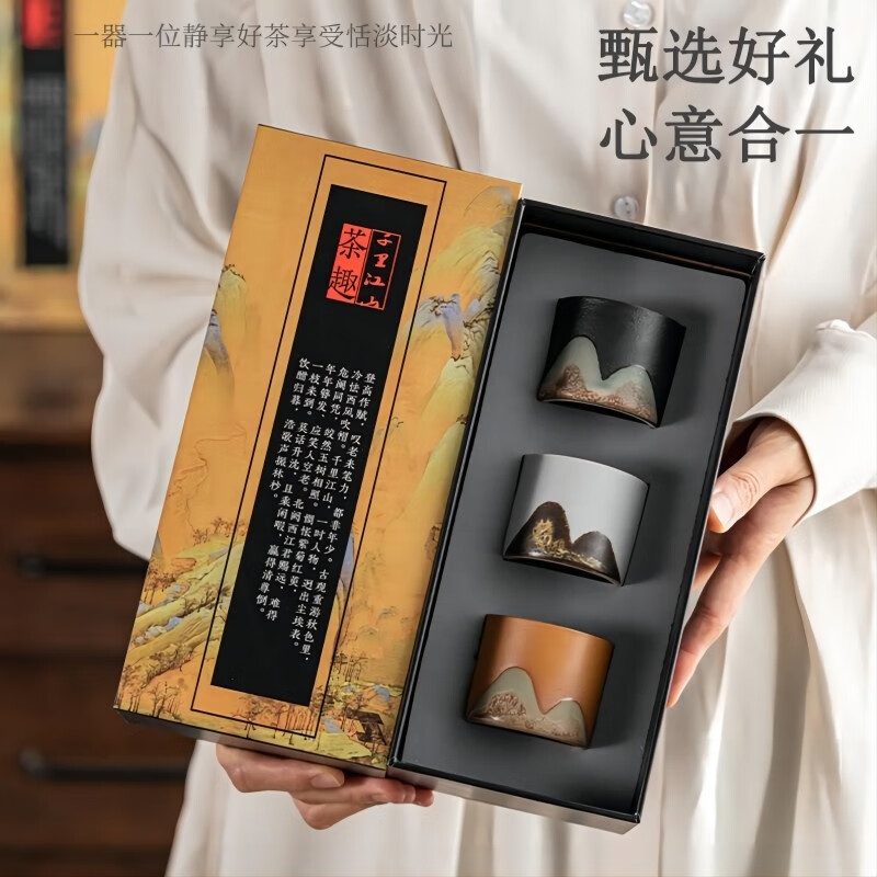 园洲绿陶瓷杯纪念品生日礼物男送老外男士伴郎实用年会伴手礼元旦节礼物 【直口三色杯】礼盒套装