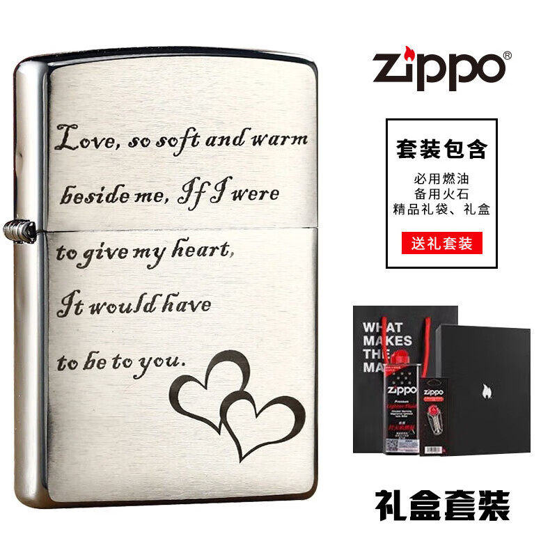 ZIPPO打火机之宝防风煤油 情人 专属礼盒含香挂 生日礼物男 含油套装
