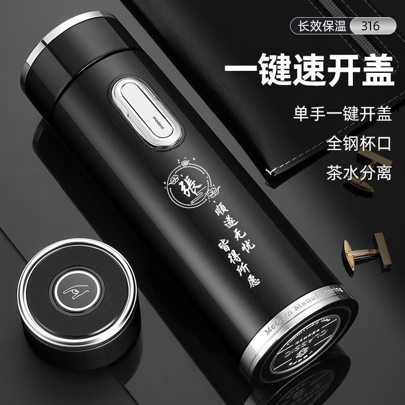 灵犀予物男款高档保温杯车载水杯生日礼物送男士朋友杯子退休年会纪念品 高档速开杯刻字+礼盒套装 520ml