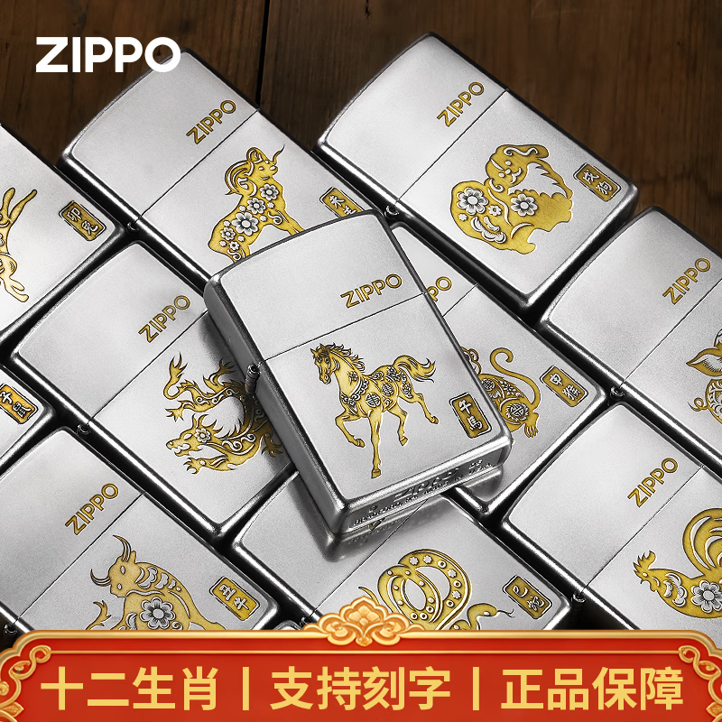 ZIPPO打火机镀铬磨砂十二生肖官方正品煤油防风男士收藏生日礼物送男友 寅虎【礼盒套装】