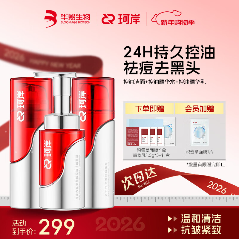 珂岸男士护肤品套装礼盒控油三件套洁面+水+乳控油保湿紧致生日礼物男