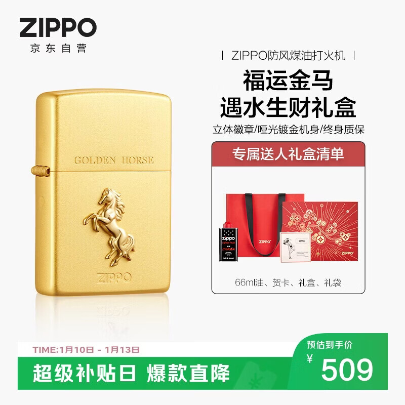 ZIPPO打火机 福运金马18K镀金贴章限量编号防风煤油 送男友生日礼物 福运金马【幸运礼盒套装】