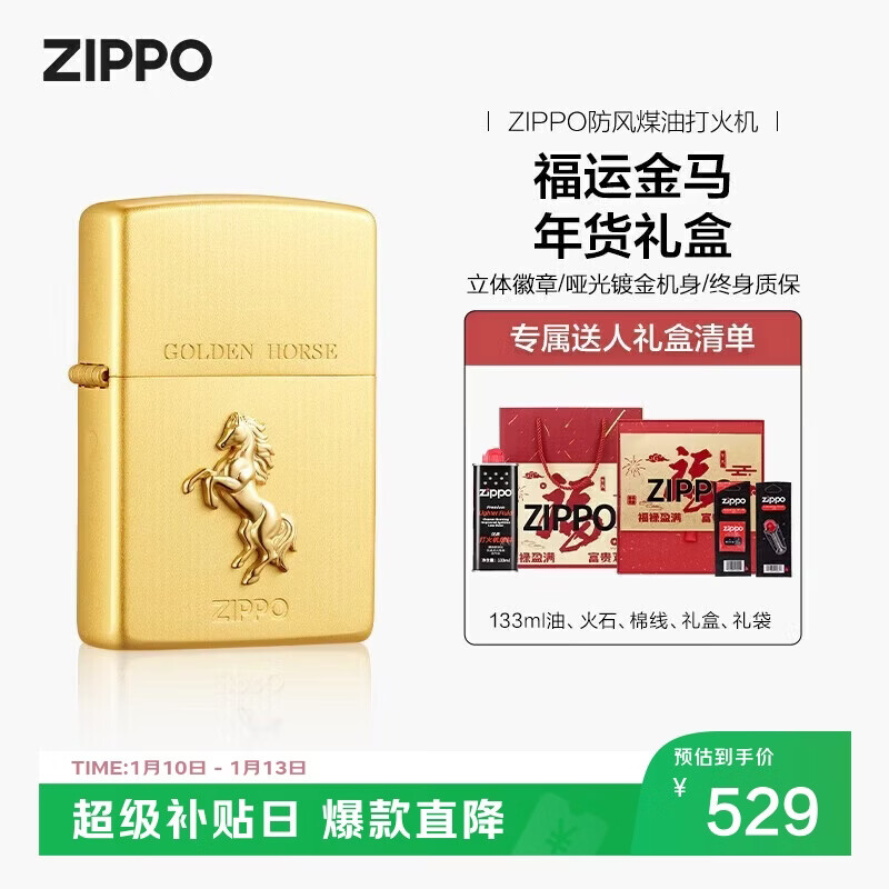 ZIPPO打火机之宝防风煤油 福运金马 年货礼盒生日礼物男 含油套装