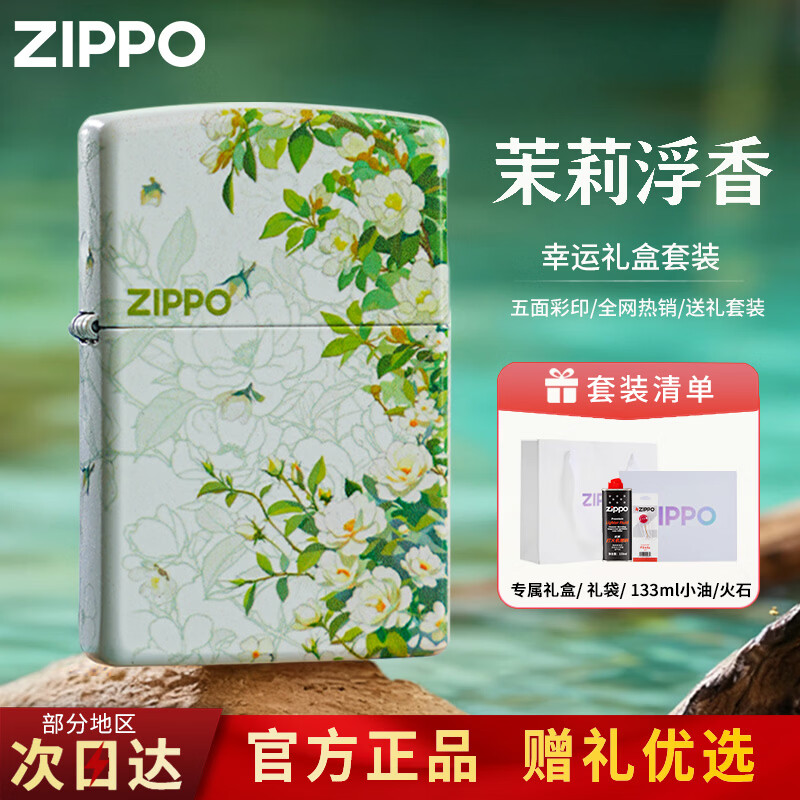 ZIPPO打火机茉莉浮香五面彩印之宝防风煤油生日礼物送男友 茉莉浮香【经典礼盒套装】