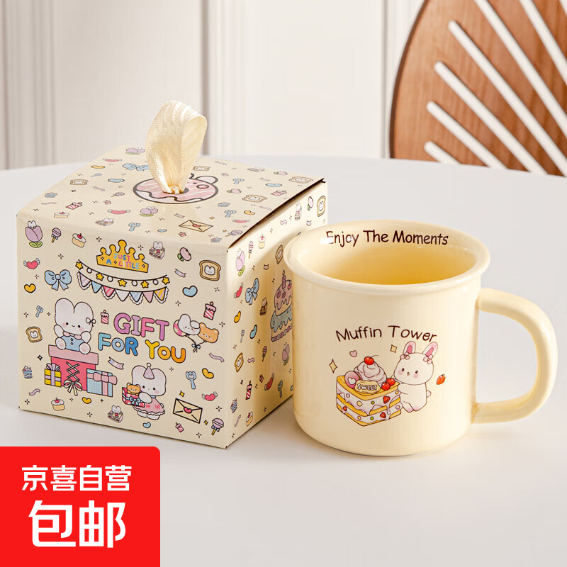 陶瓷水杯马克杯礼盒套装送男女生毕业生日礼物公司活动实用小礼品 B1-奶油杯-蛋糕兔子(礼盒装)