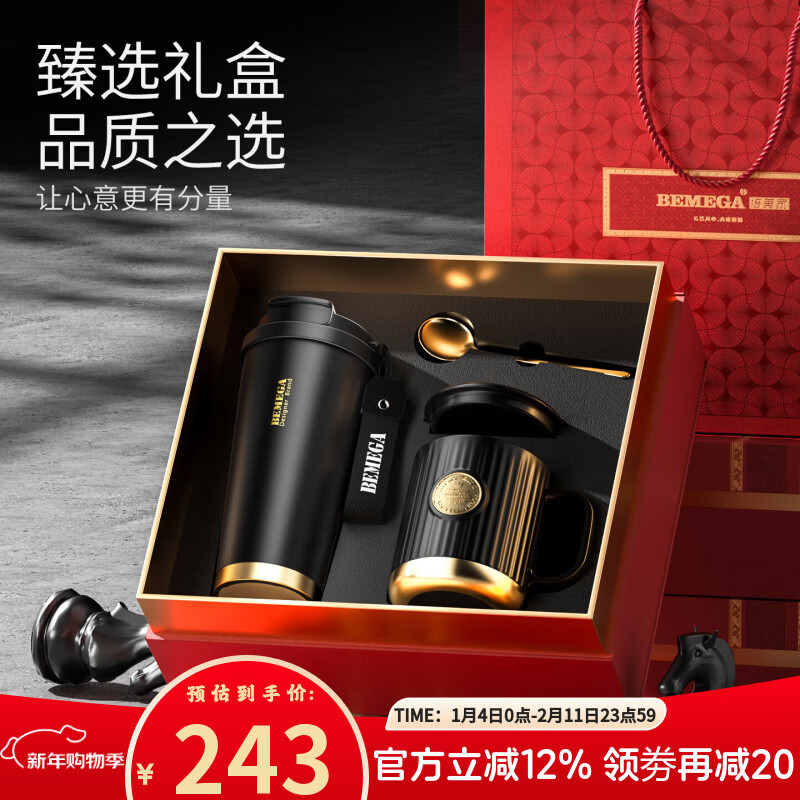 BEMEGA高档保温杯马克咖啡杯男款2025新款水杯子定制礼盒套装生日礼物女 绅士黑【陶瓷内胆咖啡杯+陶瓷马克杯】
