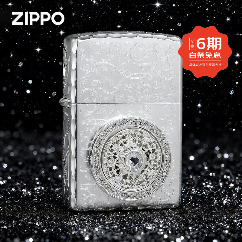 ZIPPO打火机正版心动罗盘镀银富贵花贴章送男友高档新年生日礼物情人节 心动罗盘 礼盒套装(火机+油+火石+礼袋+礼盒)