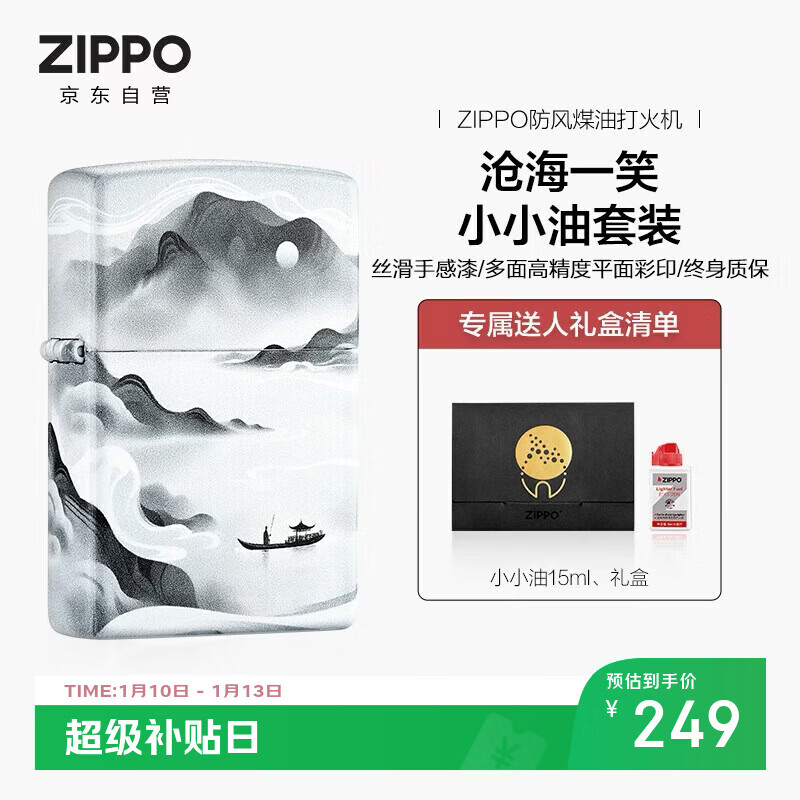 ZIPPO打火机之宝防风煤油 沧海一笑礼盒 生日礼物男送老公送男友 套装