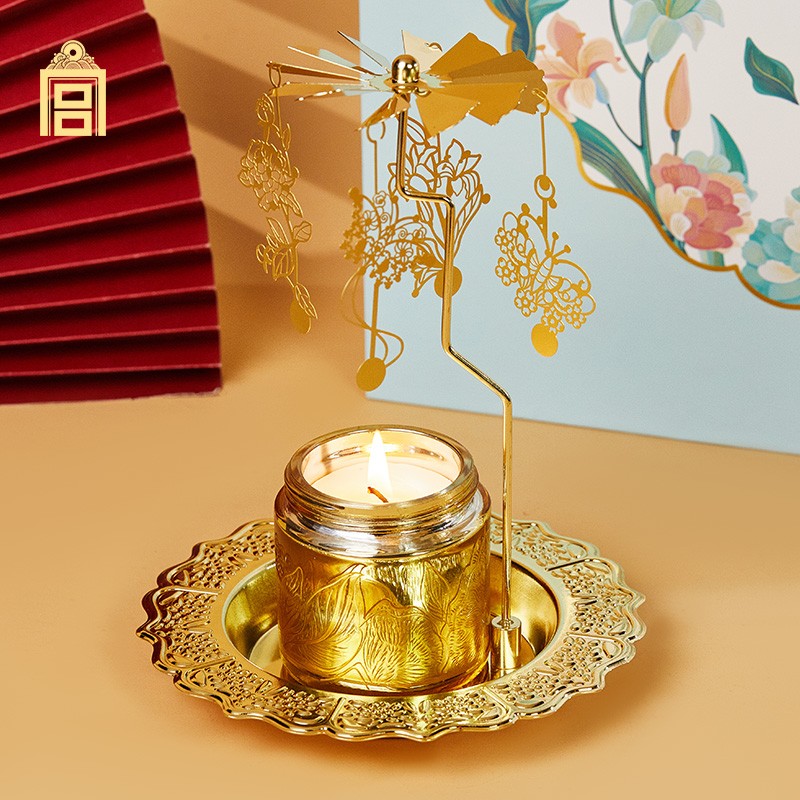 故宫文化 紫禁花语旋转香薰烛台 走马灯蜡烛香氛套装 博物院文创 生日礼物 旋转烛台礼盒装