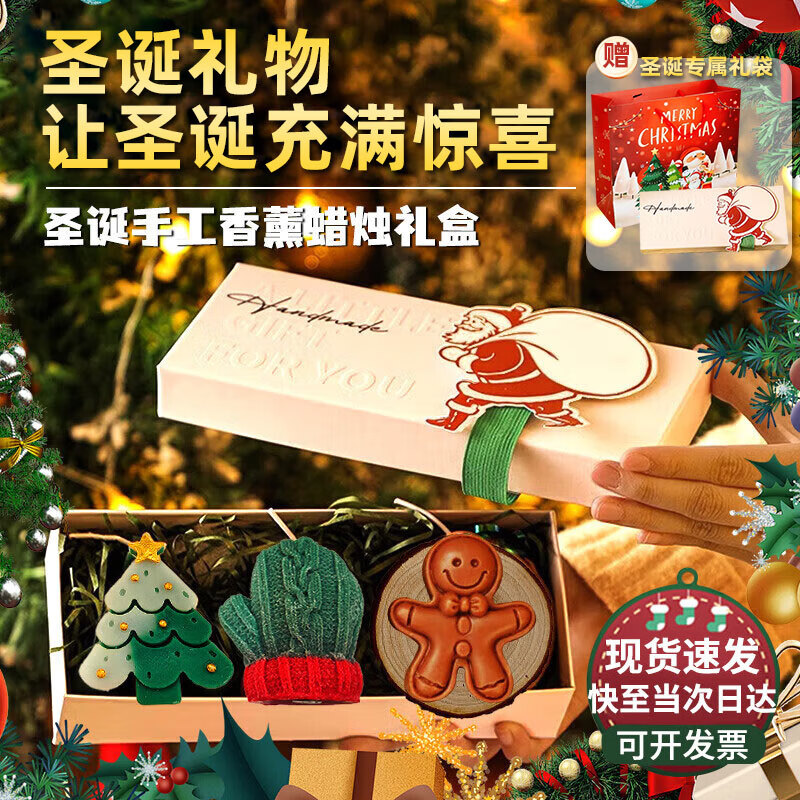 聚莜家圣诞节礼物送女友实用礼品香薰蜡烛礼盒套装创意树装饰香氛伴手礼 圣诞礼盒套装+礼袋