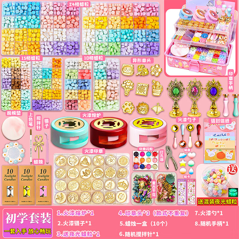福拉熊火漆印章套装豪华版咕卡全套蜡烛礼盒全套火气制作的夜光蜡粒火机蜡印火器印章女孩儿童玩具礼物 初学套装【送夜光蜡粒】