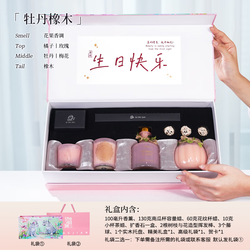 契初涧香薰蜡烛礼盒高级香氛伴手礼新婚礼物摆件套装生日礼物送闺蜜女友 【生日送礼必备】牡丹橡木 香型