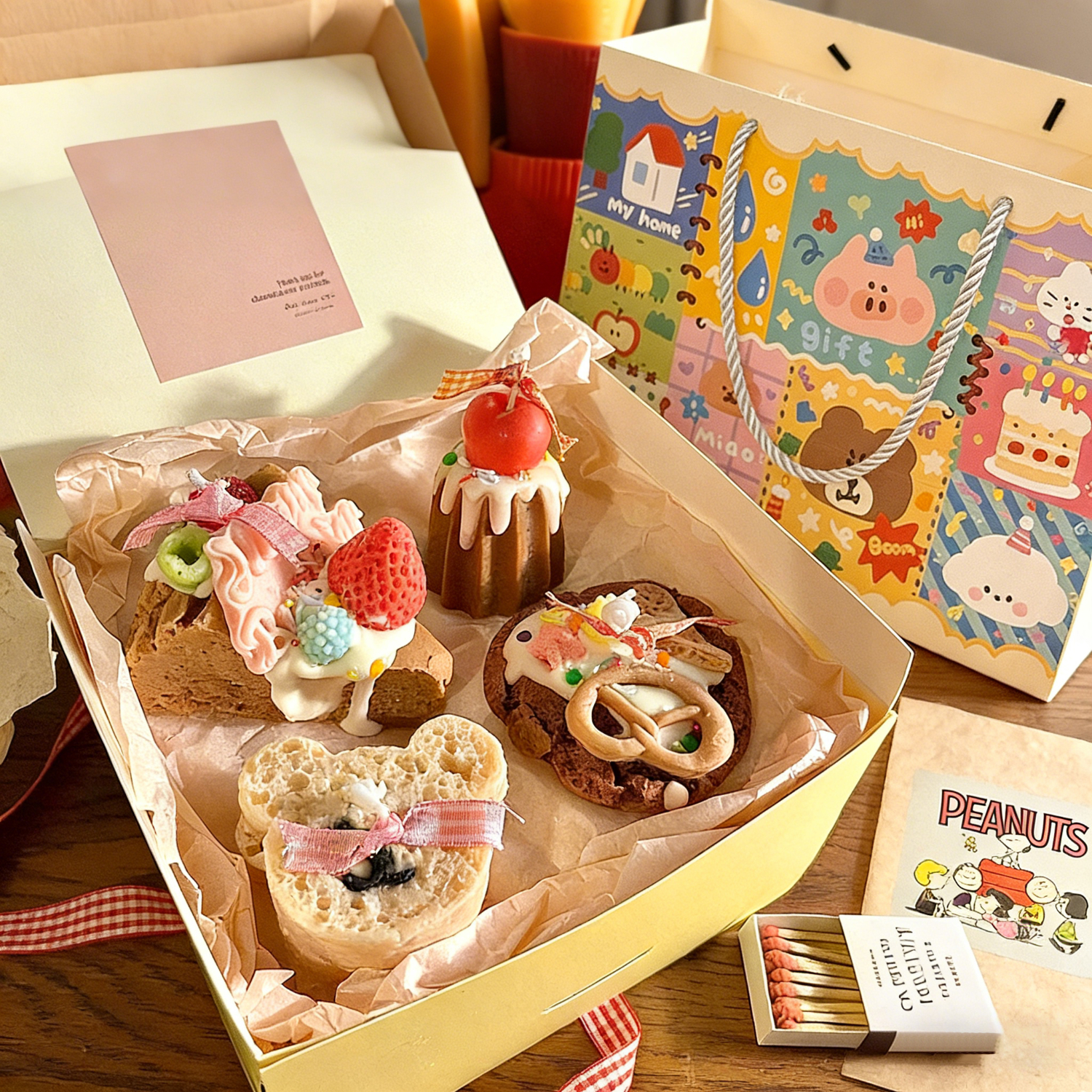 心楠甜品香薰套装蜡烛礼盒生日礼物送女生闺蜜同学走心过年女生精致 甜品香薰蜡烛四件套+小熊礼袋 送玻璃烛台