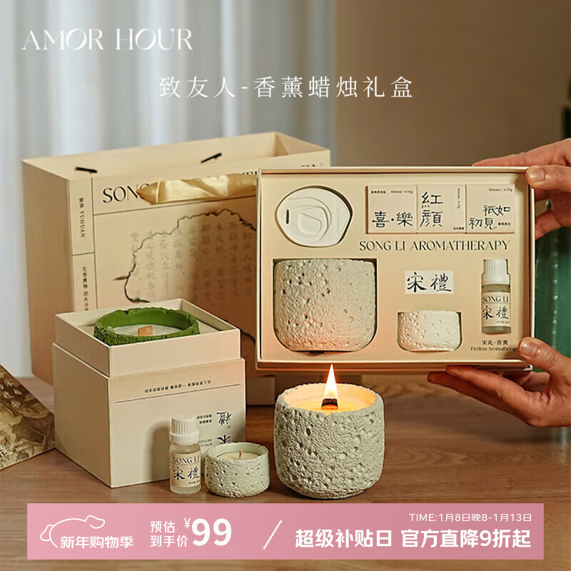 AMOR HOUR宋礼香薰蜡烛礼盒卧室香氛摆件小众高级氛围感礼物新年伴手礼套装