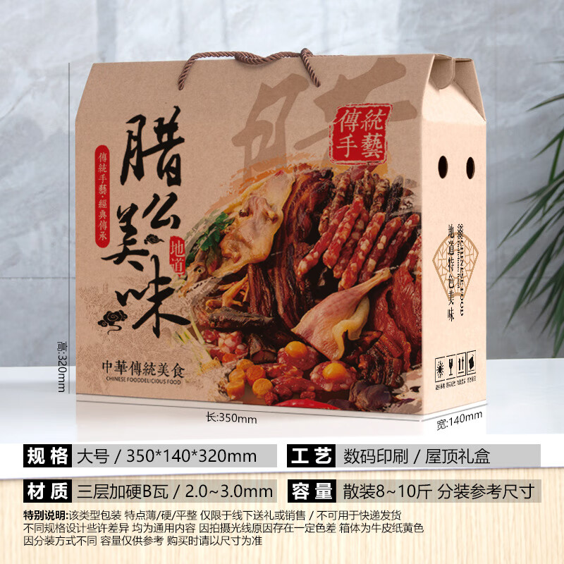 动蚁四川腊味礼盒空盒子年货广式腊肠礼品盒5/10斤高档腊肉香肠包装盒 腊味/数码屋顶/大号* 线下用空礼盒