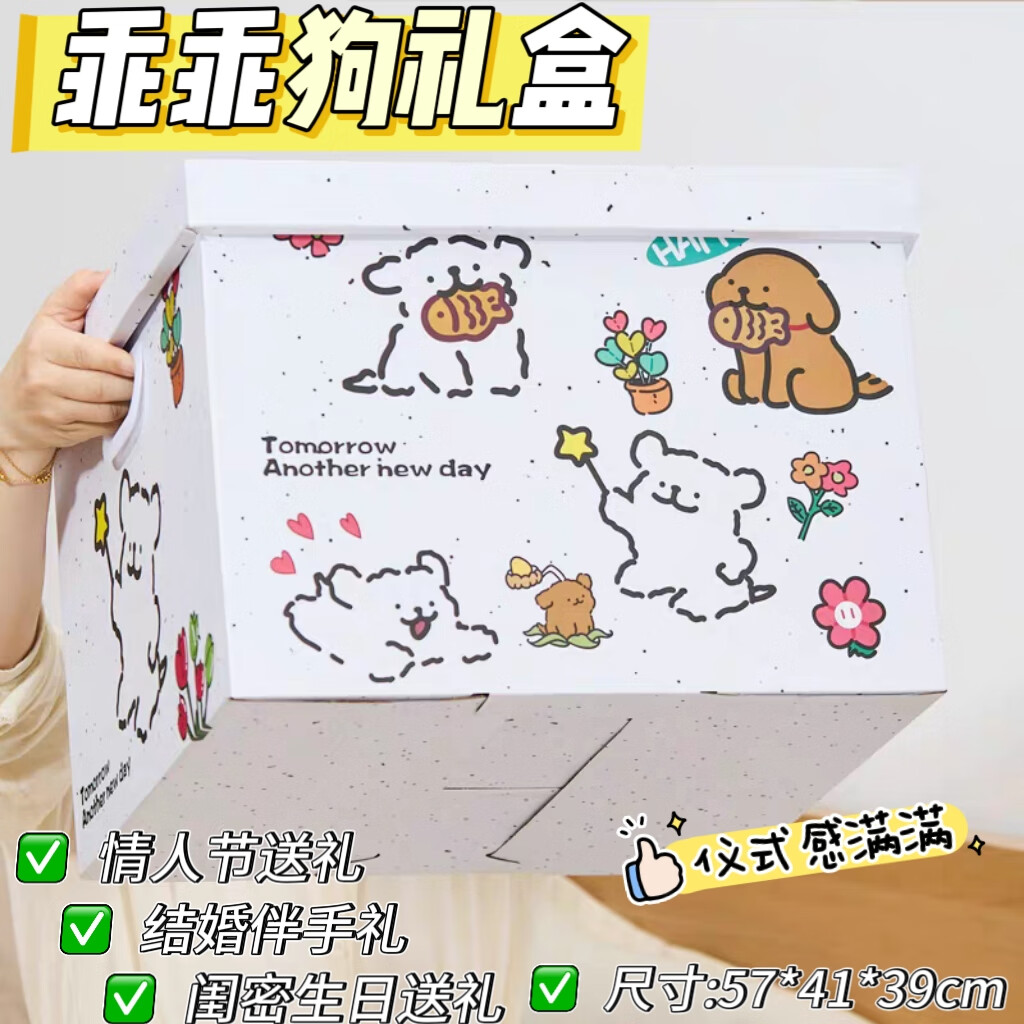 线条小狗生日礼物盒子礼盒空盒礼品盒礼物包装盒大号纸箱礼物箱子 乖乖狗礼品箱 57.5*41*39.5cm