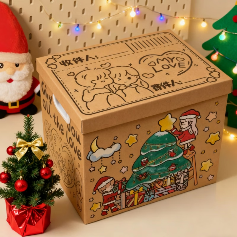 礼美达圣诞生日礼盒空盒礼品盒大号礼物盒包装盒子送男女生零食纸箱高级 礼盒+开盖既亮灯 圣诞款2号31*31*31cm
