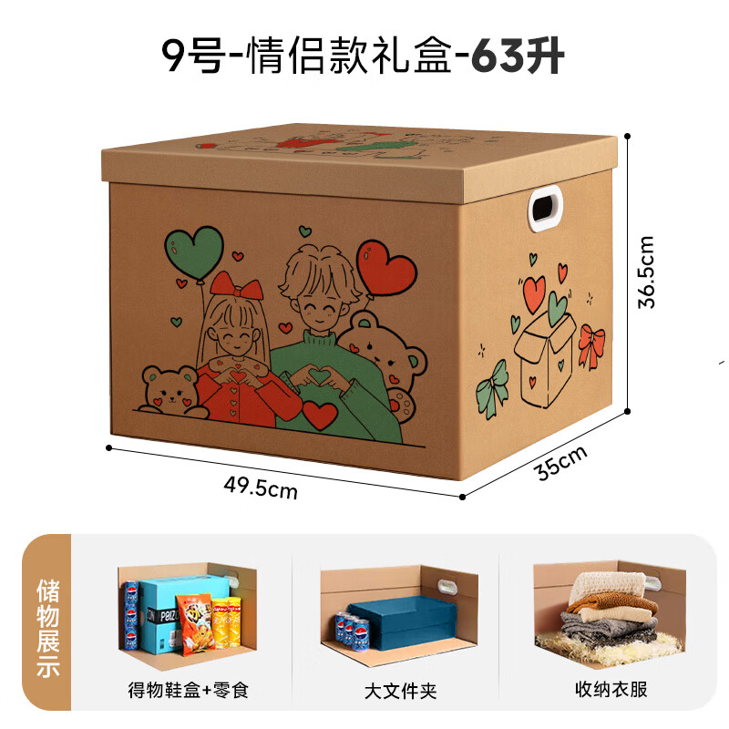 昂图搬家纸箱打包收纳箱子生日礼品盒空盒礼物箱特大号零食礼盒包装盒 9号彩箱款【情侣】 1个装
