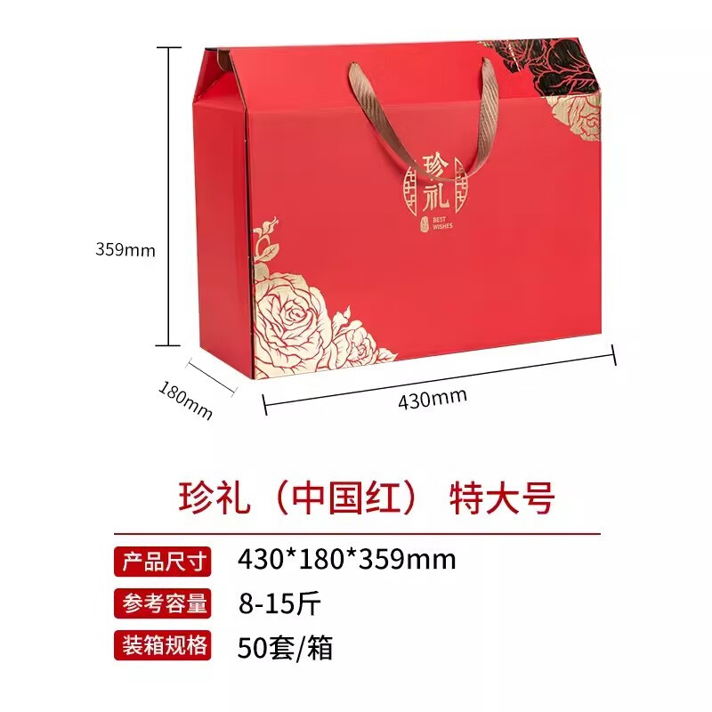 霏语通用春节年货包装盒定制通用礼盒空盒礼品盒水果红枣水果熟食纸箱 中国红特大号