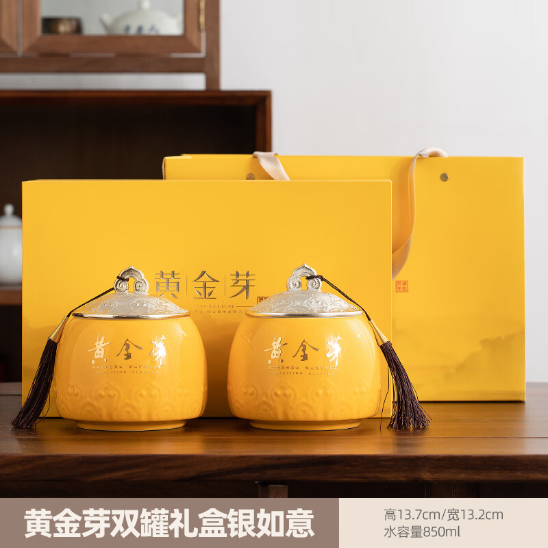 融达 黄金芽包装礼盒装空盒高档茶叶罐包装盒空礼盒金骏眉中式定制 黄金芽双罐空礼盒银如意