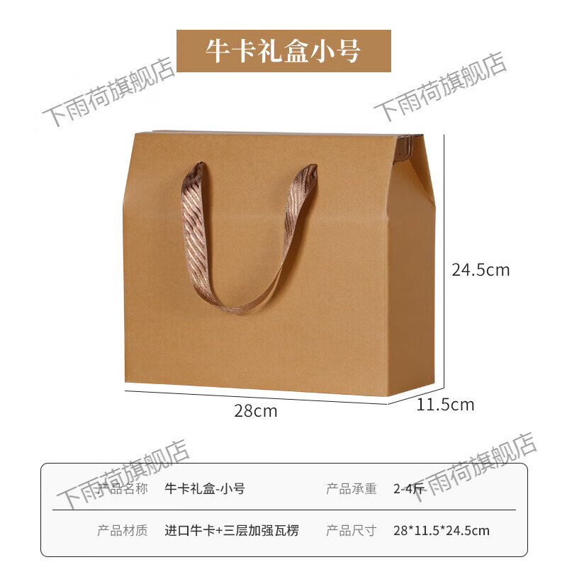 下雨荷通用牛皮纸礼盒土特产空白包装盒腊味熟食羊肉农产品送礼空盒定制 牛卡礼盒【小号】2-4斤 1个空盒