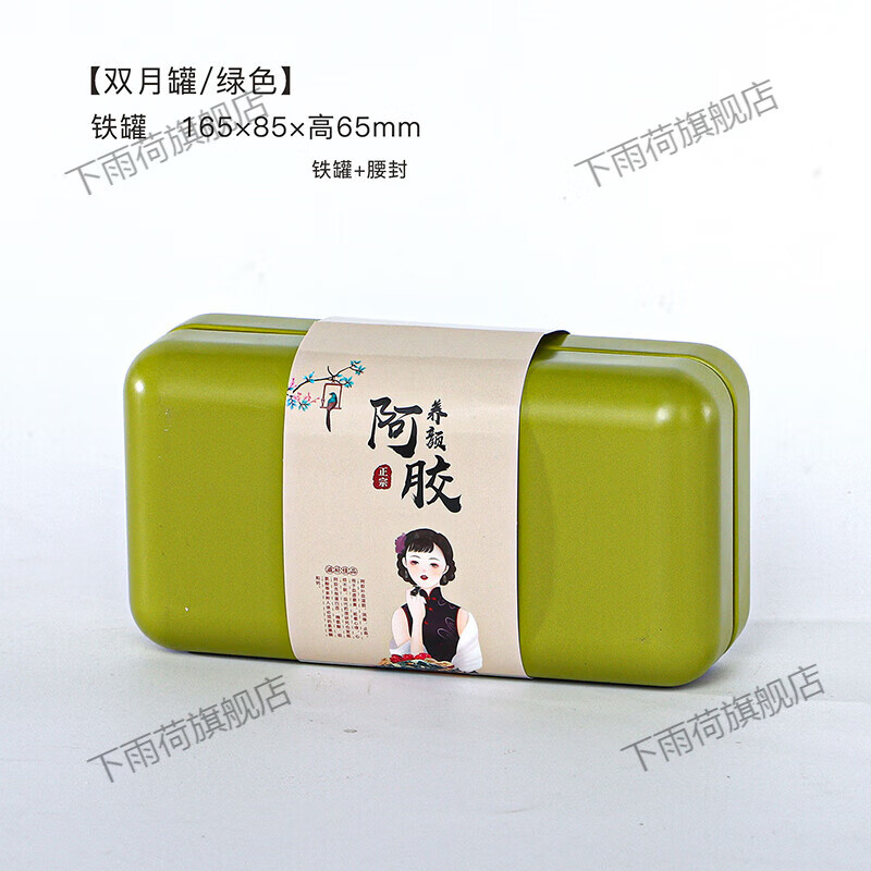 下雨荷阿胶糕包装盒半斤500g装礼品盒纯手工固元膏铁盒包装礼盒空盒定制 双月罐果绿色 无手袋 空盒