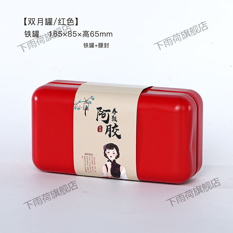 下雨荷阿胶糕包装盒半斤500g装礼品盒纯手工固元膏铁盒包装礼盒空盒定制 双月罐红色 无手袋 空盒
