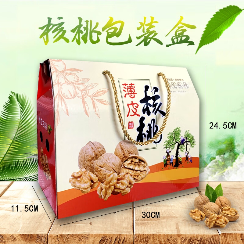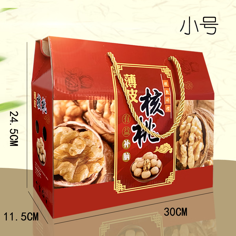 下雨荷 核桃包装盒空盒5-10斤装薄皮核桃仁纸皮核桃礼盒高档礼品盒定制 薄皮核桃红色礼盒小号(3-5斤装) 1个空盒