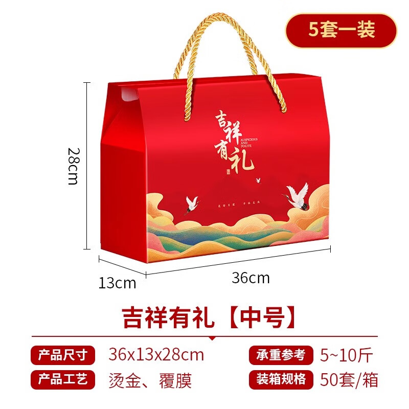 菲华年货礼盒空盒通用春节包装盒礼品盒糕点水果高档纸箱零食盒定制RY 吉祥有礼中号(5个装)