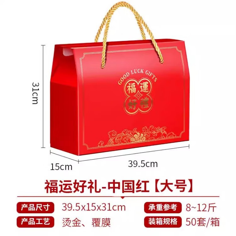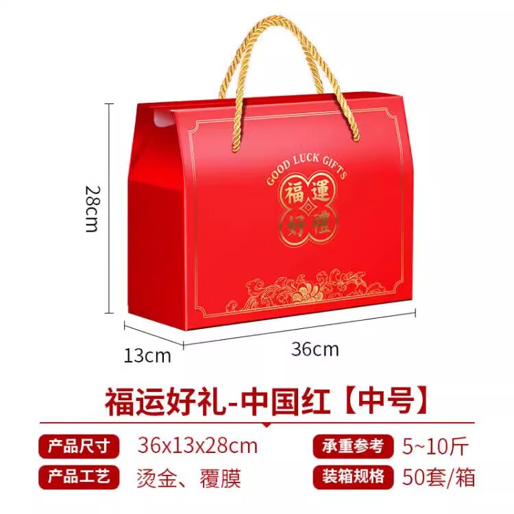 菲华年货礼盒空盒通用春节包装盒礼品盒糕点水果高档纸箱零食盒定制RY 福运好礼-中国红中号