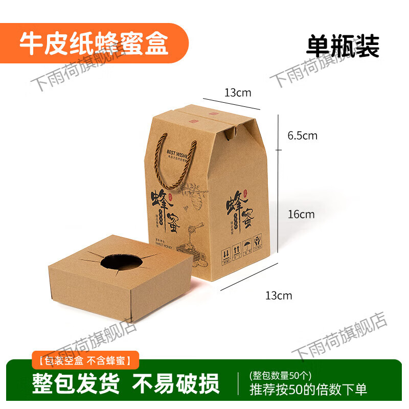下雨荷 蜂蜜包装盒空盒2-4斤装野生土蜂蜜手提袋高档礼品盒外包装盒定制 水印牛皮-单瓶装礼盒 1个空盒(单款礼盒5个起售)