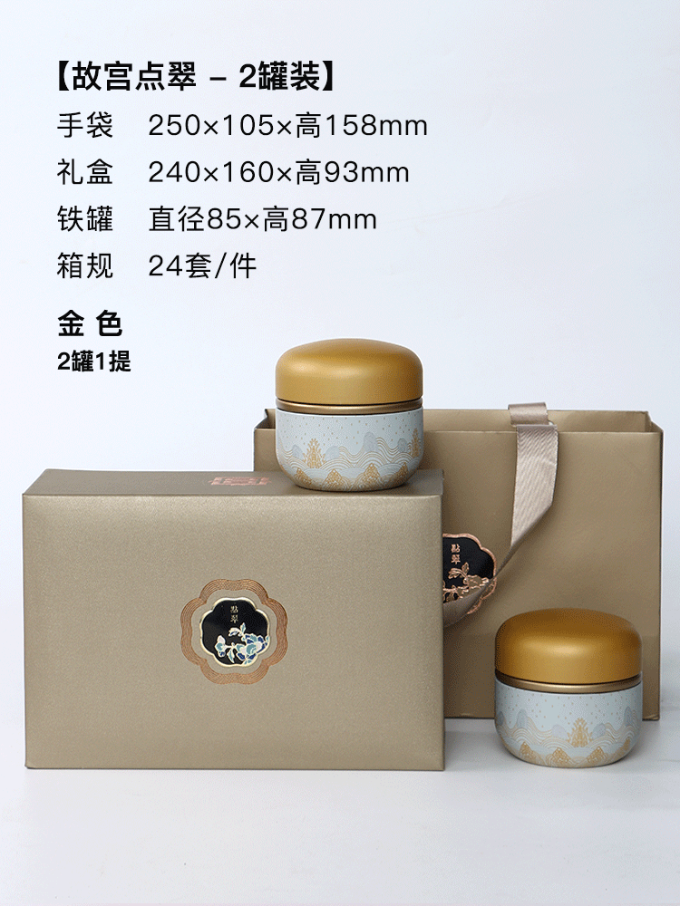 茶叶包装盒空礼盒茶叶盒伴手礼礼盒装空盒茶叶罐红茶礼盒空盒定制 故宫点翠金色两罐