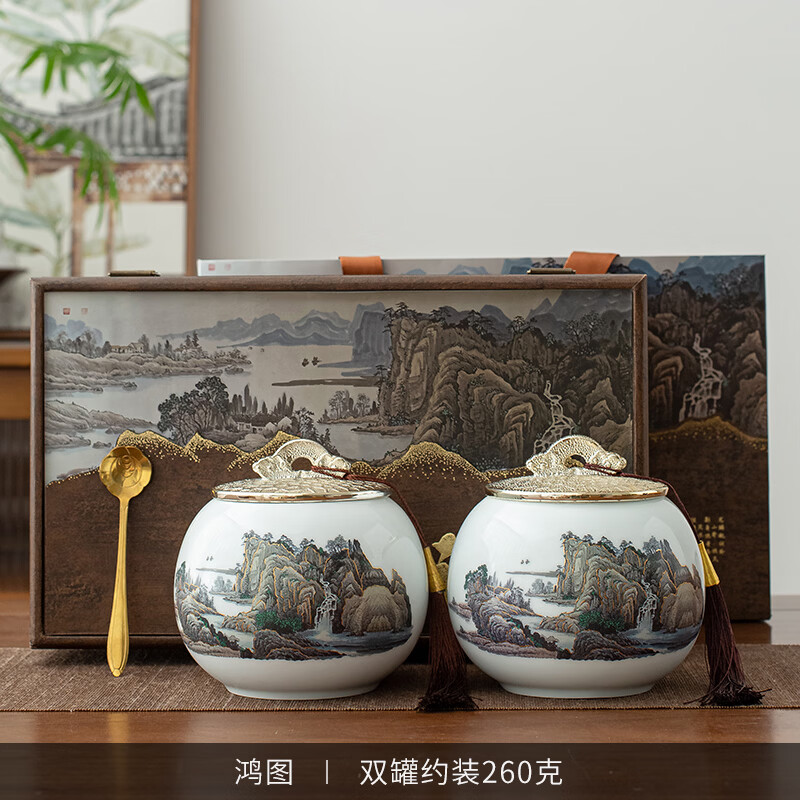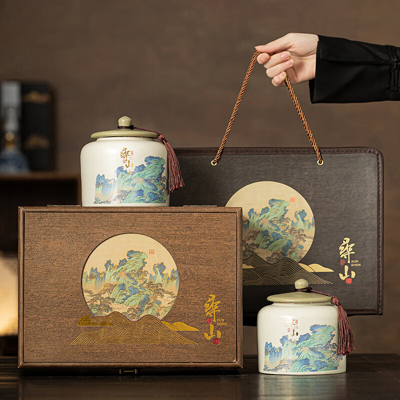 匠庄高档陶瓷罐茶叶包装礼盒空盒红茶绿茶金骏眉大红袍礼盒装定制 寻山