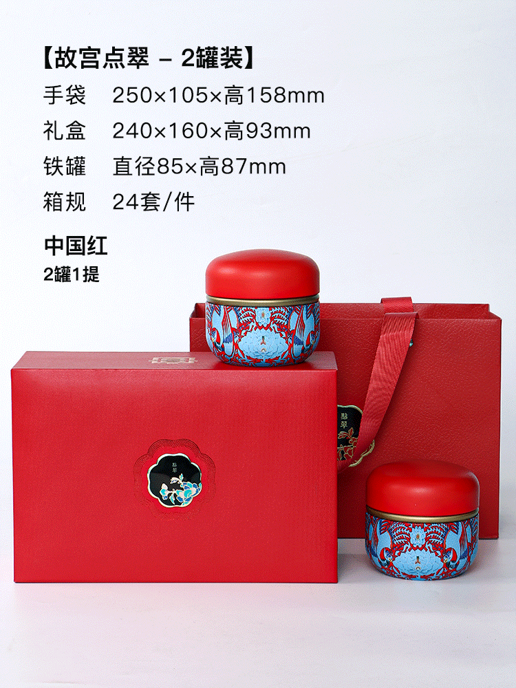 茶叶包装盒空礼盒茶叶盒伴手礼礼盒装空盒茶叶罐红茶礼盒空盒定制 故宫点翠红色两罐