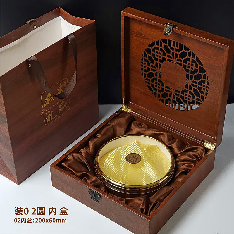 新款批发臻品木盒品礼盒空盒通用包装盒木纹海参燕窝西洋参石斛鹿 正方形圆开窗 臻品20直径圆 容 295x295x100mm 零售1套起