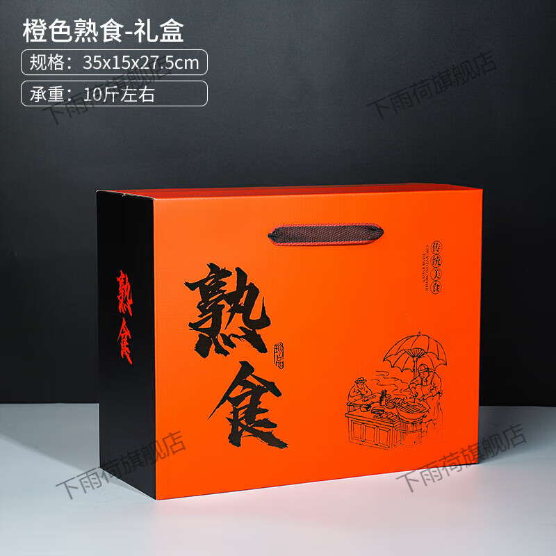下雨荷 熟食包装盒5-10斤装土特产高档手提礼盒包装盒牛肉驴肉纸箱定制 橙色 熟食礼盒(10斤装) 1个空盒(5个起售,20个起批发价