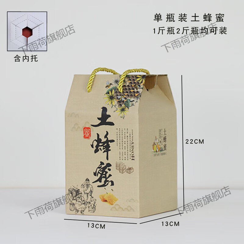 下雨荷通用高档蜂蜜包装盒2-4斤装特产装土蜂蜜的礼盒手提礼盒空盒定制 单瓶土蜂蜜盒加内托 1个空盒(5个起售,10个起批发价
