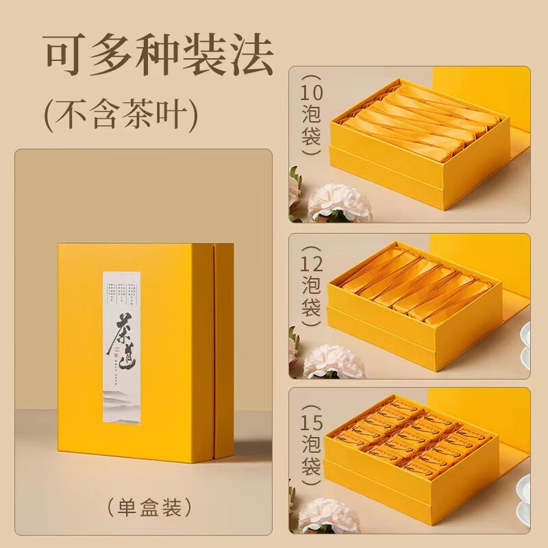 维诺亚茶叶礼盒包装盒批发空盒精致包装礼通用茶礼盒空盒茶叶罐岩茶肉桂 茶道小盒(单盒)帝黄色