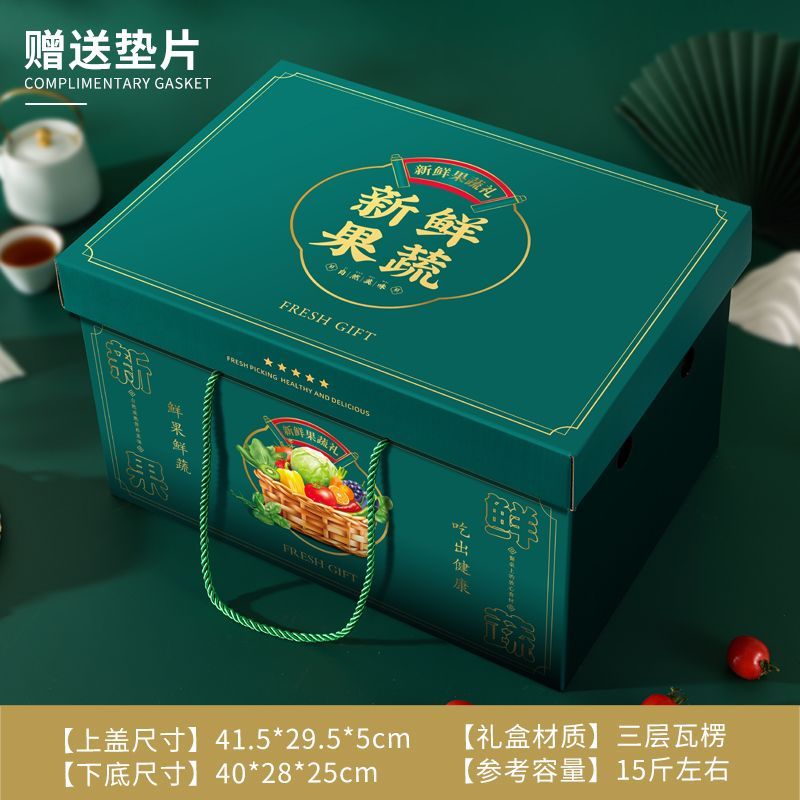 蔬菜礼盒定制山东寿光绿色果蔬包装盒设计厂家番茄西红柿纸箱批发 上下盖新鲜果蔬送垫片10个空盒