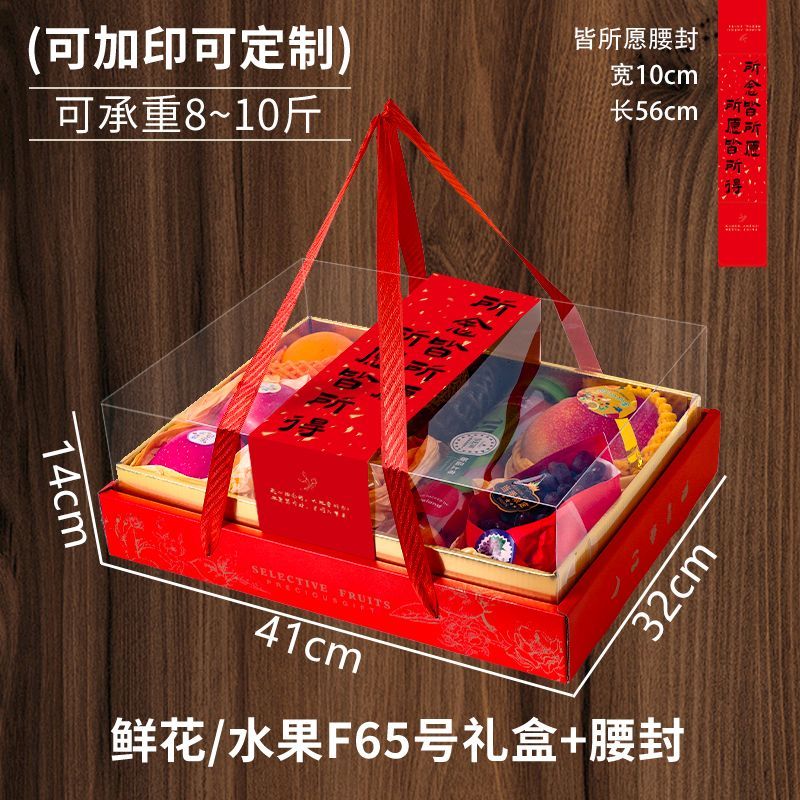 新款透明盖水果礼盒空盒子10斤装手提通用中式坚果零食包装盒批发 皆所愿-腰封+透明礼盒 所见即所得【10套】